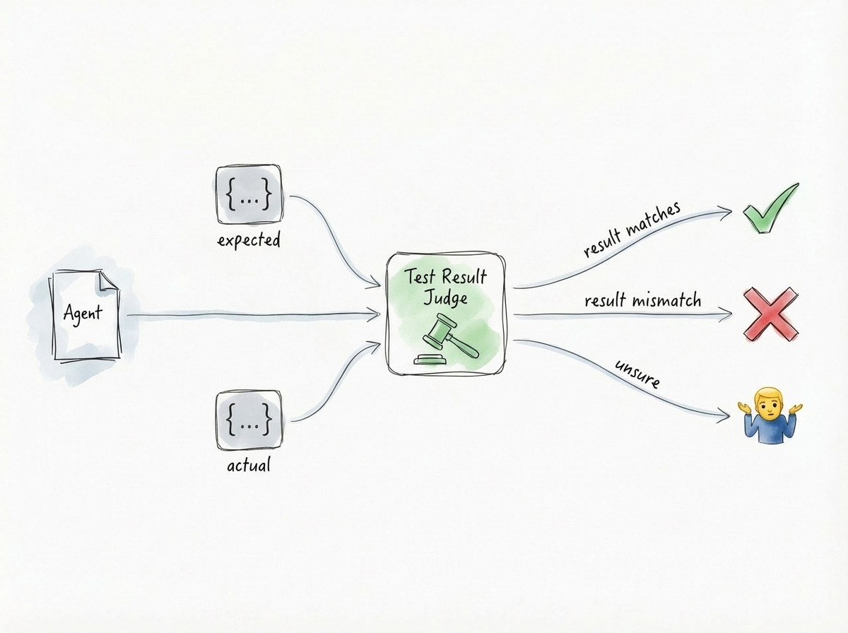 To handle this, we give a judging agent your spec, as well as the “expected” result and the “actual” result from the test case. We ask it: Are these two things effectively equivalent according to what the spec lays out?