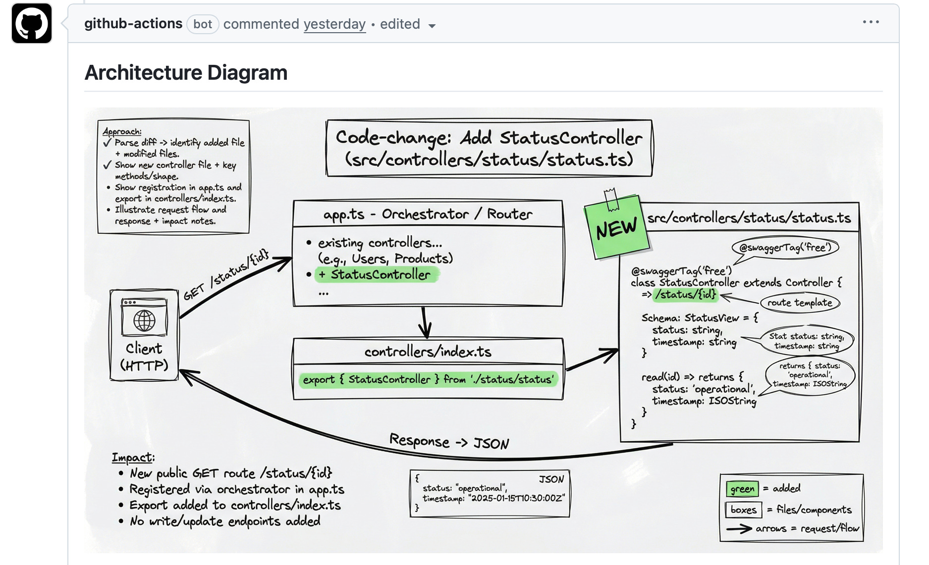 Now when you comment /generate-diagram, a diagram based on the pull request will be generated.